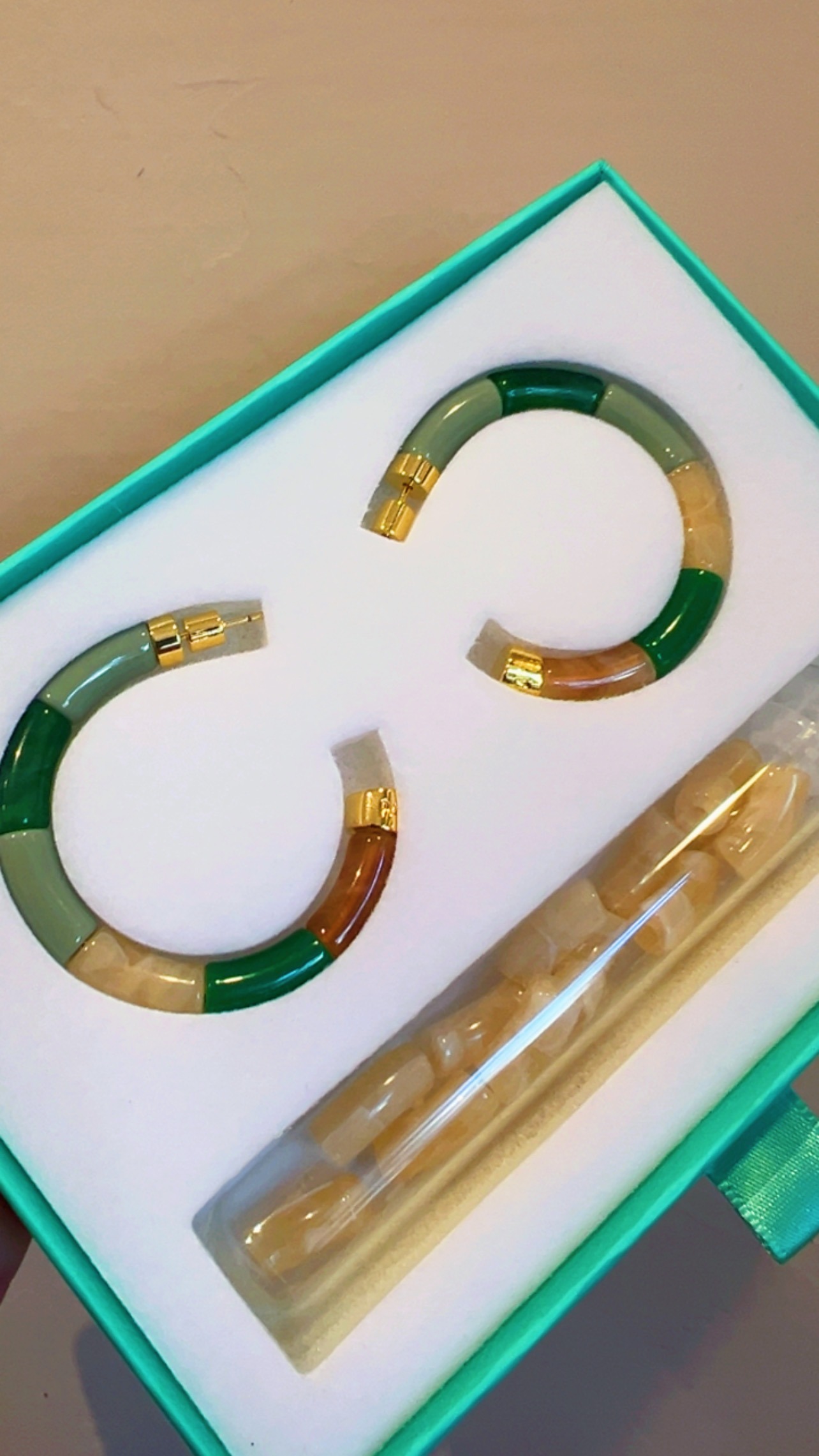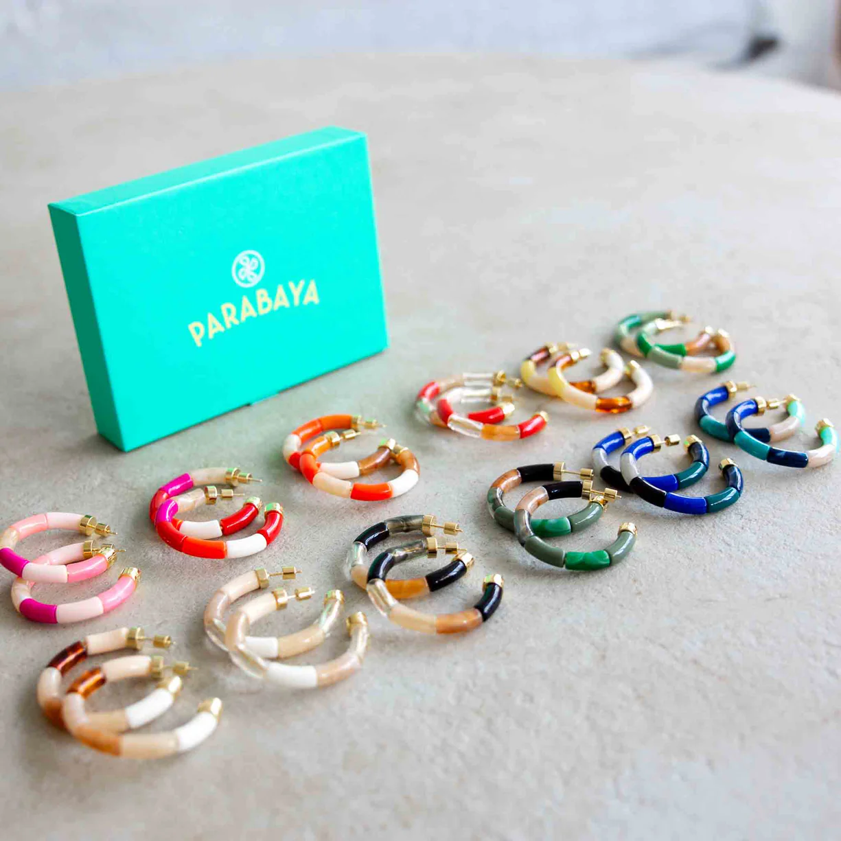 Ultra légères (5,8 g avec 6 perles en acrylique) et de la taille parfaite (3,5 cm), ces créoles sont conçues pour jouer avec les couleurs. Grâce à une petite rondelle qui se visse et se dévisse facilement, vous pouvez changer les perles et les assortir à toutes vos tenues, en un clin d’œil.