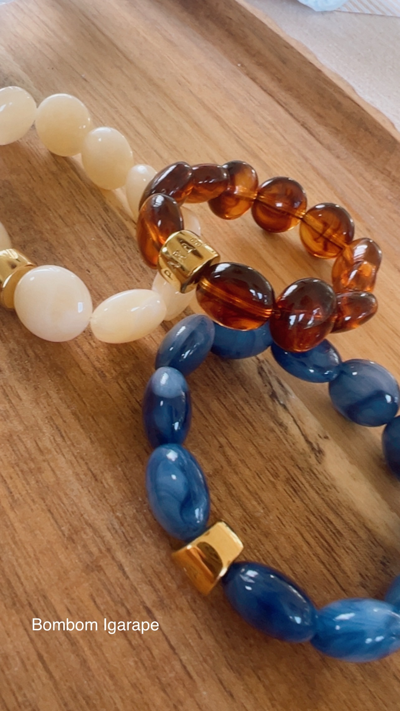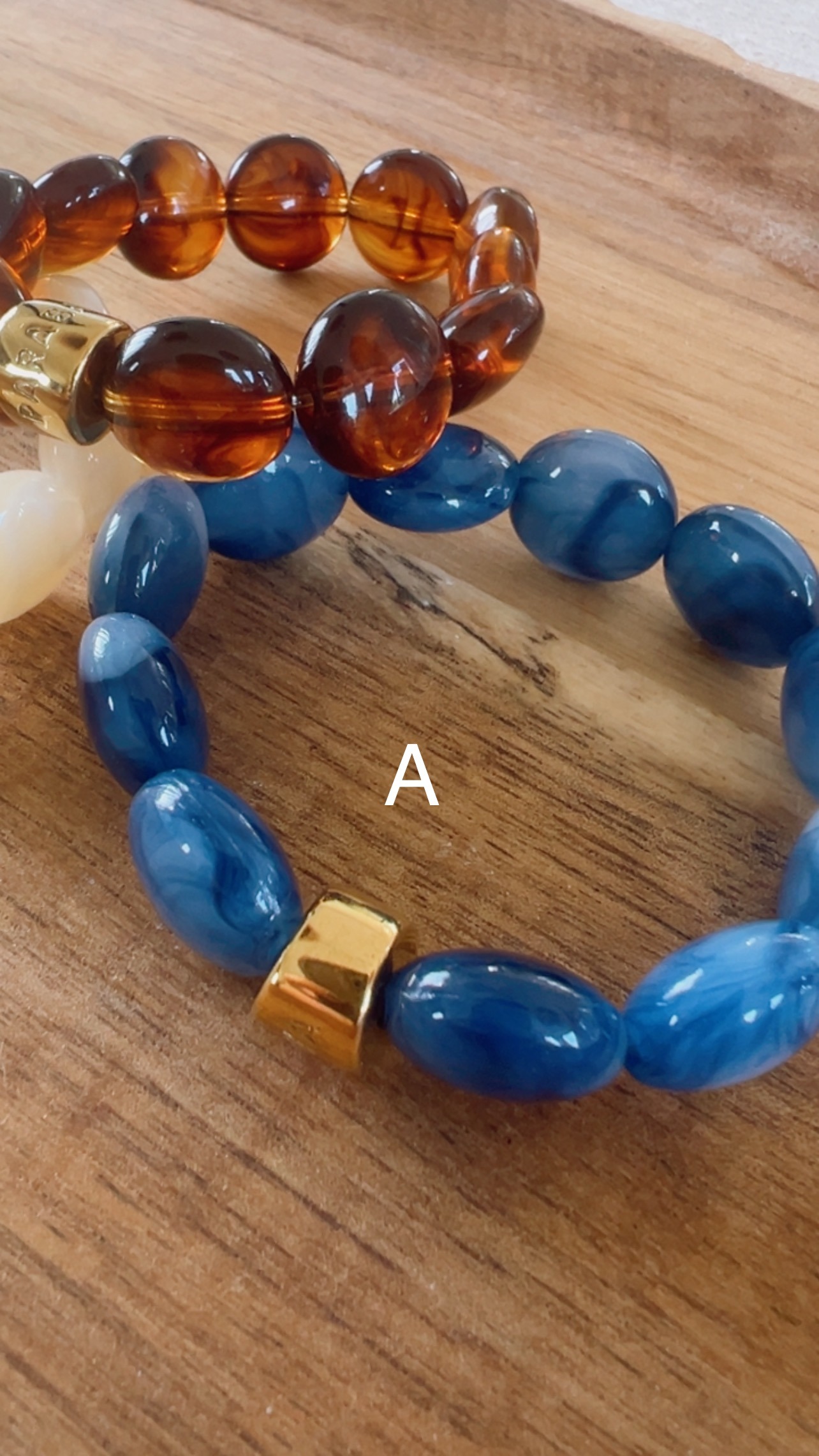 LES BRACELETS SONT COMPOSÉS DE 6 PERLES EN ACRYLIQUE OU RÉSINE DE TRÈS BELLE QUALITÉ ET UNE PERLE GRAVÉE PARABAYA EN ACIER DORÉ À L’OR FIN.
