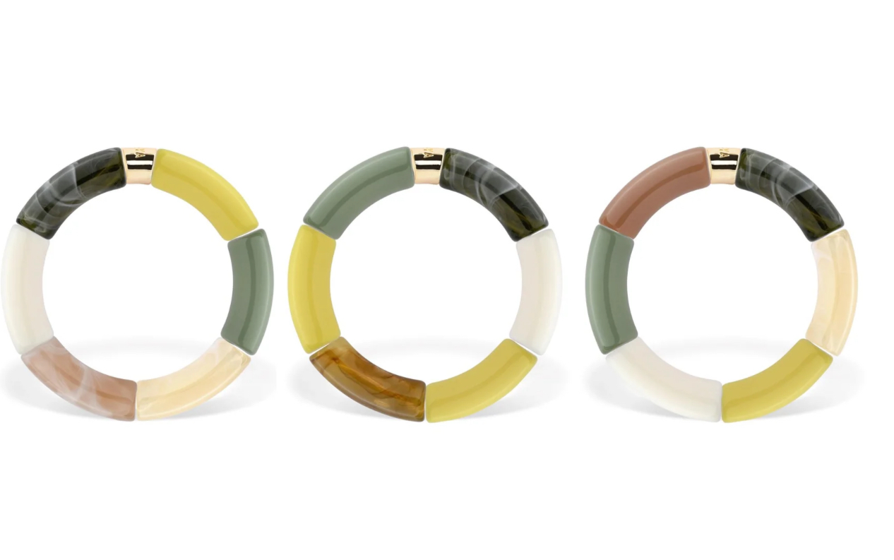 LES BRACELETS SONT COMPOSÉS DE 6 PERLES EN ACRYLIQUE OU RÉSINE DE TRÈS BELLE QUALITÉ ET UNE PERLE GRAVÉE PARABAYA EN ACIER DORÉ À L’OR FIN.