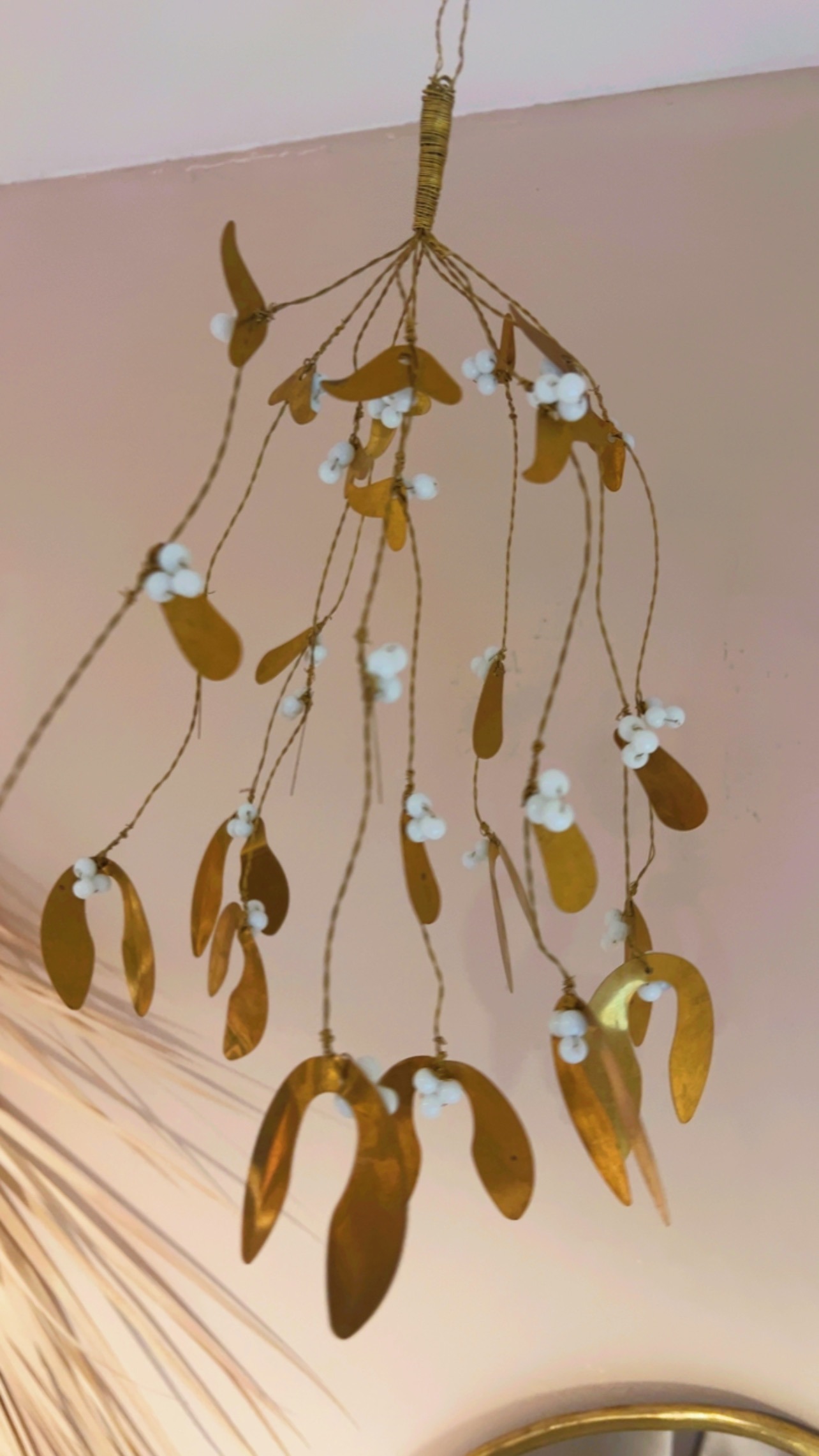 Fabriqué à la main en métal cet ornement de branche de gui  est un symbole de convivialité mais aussi de fête.