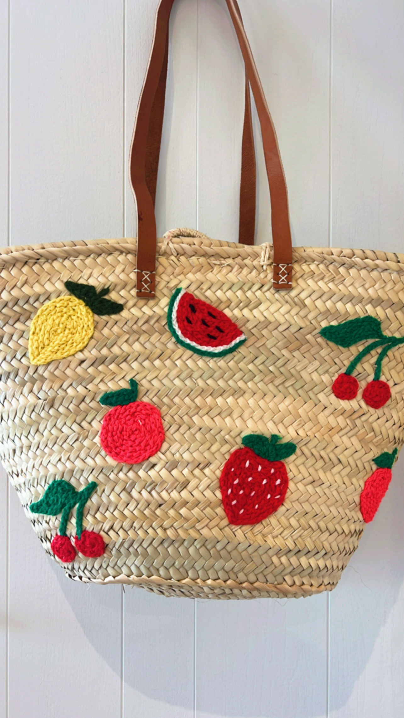 Matière: feuilles de palmiers, laine et cuir